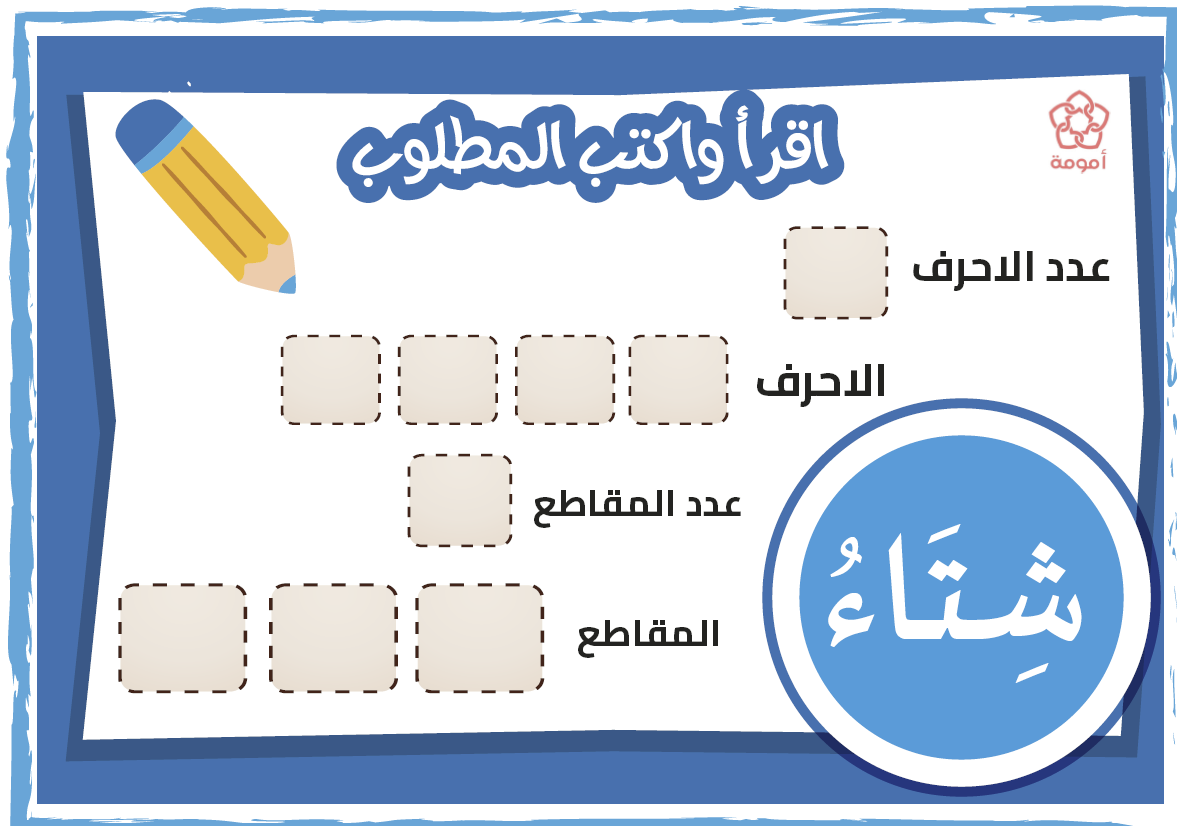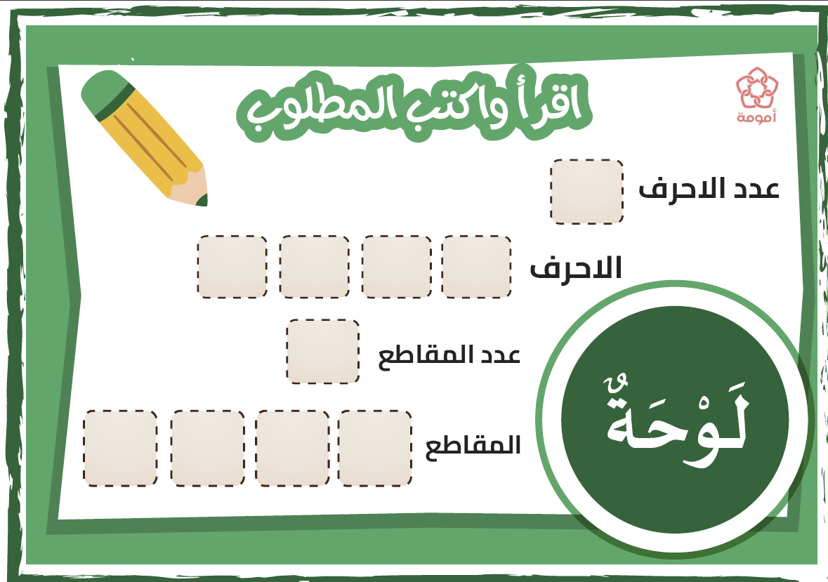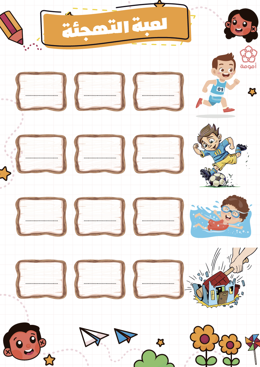 يفضل طباعة الأنشطة على ورق مقوى قابل للمسح بعد الكتابة لضمان إعادة استخدامه بشكل متكرر