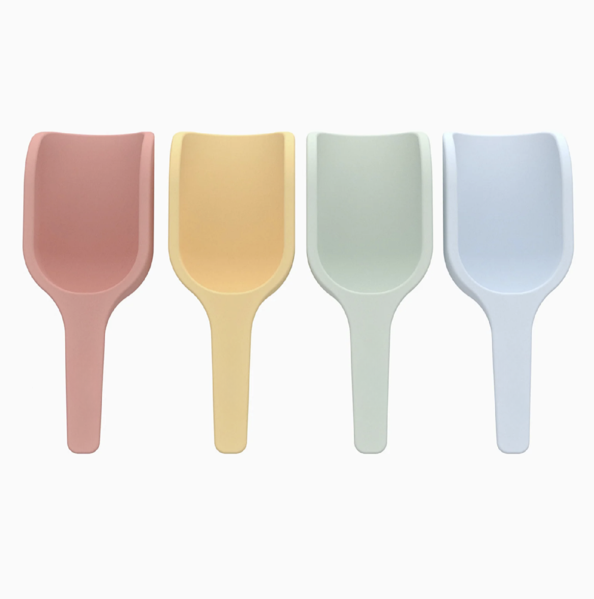 مجموعة الملاعق الملونة (للغرف والنقل): 4 ملاعق بألوان الباستيل ومقبض مريح، مثالية لغرف المواد من الصينية العميقة وتوزيعها بدقة.